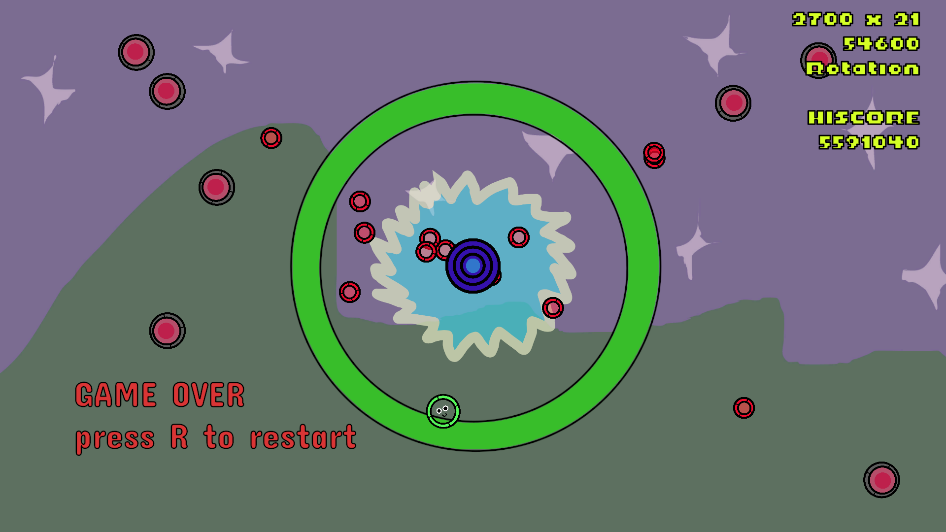 Loopy is a bullet hell game where you try to hit the bullets - but gravity gets in your way.